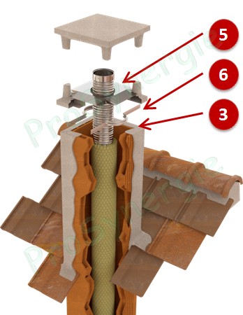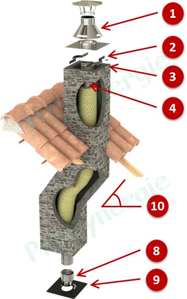 Pour un conduit de fumée en situation intérieure (Conduit de fumée existant en terre cuite + Tubage TEN LISS pré-isolé)