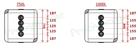 - Etroite : largeur réduite de 75 cm pour la 750 litres et de 82 cm pour la 1000 litres.