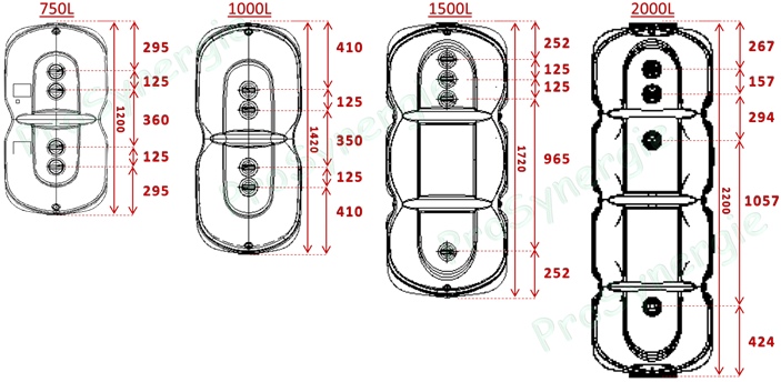 Pour faire un bon choix de votre modèle de cuve à fioul double paroi Standard Intégrale, reportez-vous à cette fiche technique. Les dimensions principales sont indiquées.