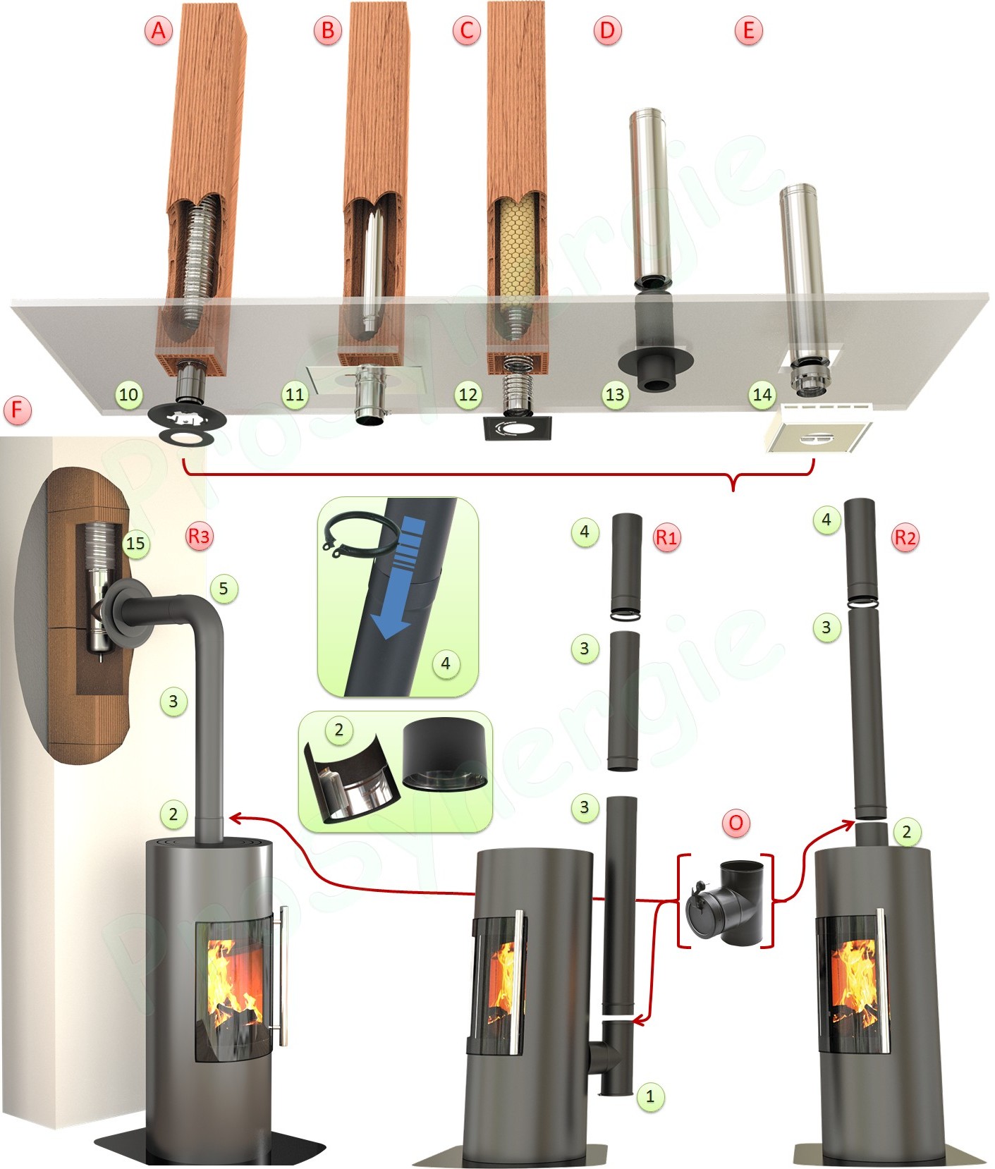 Conduits de cheminée (repère A/B/C/D/E/F) :