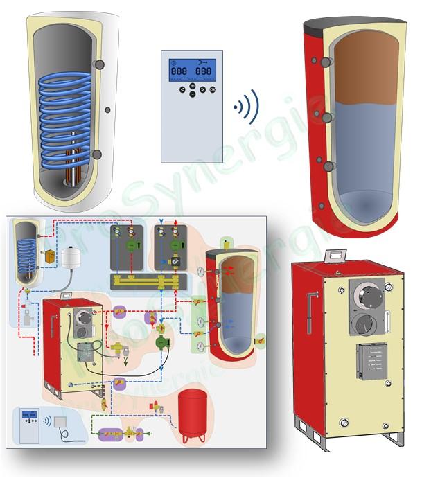 Schémas de montage Chaudière bois bûches avec Ballon de stockage et Départ de chauffage