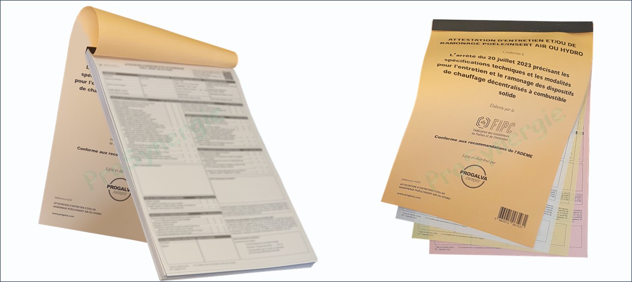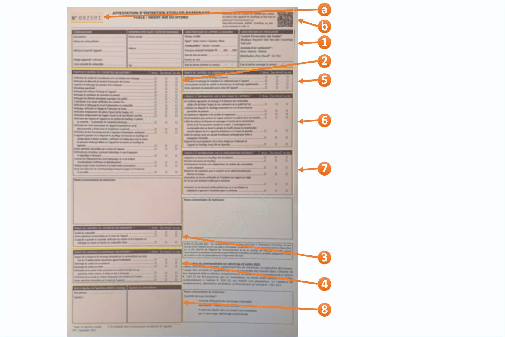 Nouveau carnet d'attestation d'entretien poêle, chaudière ou insert à bois bûche et granulé