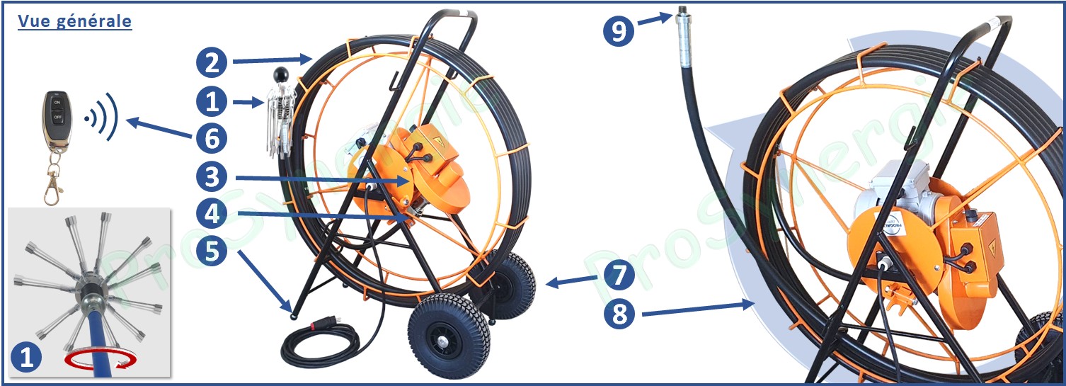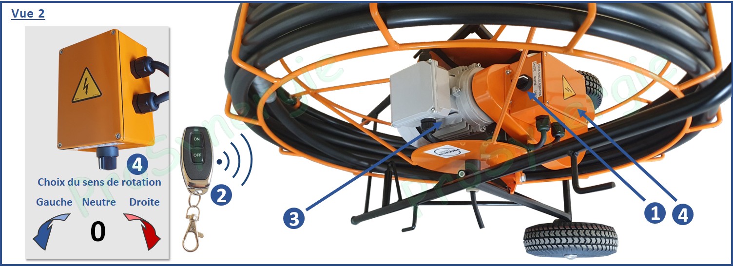 Le moteur entraînant le câble rotatif doit être puissant (220 Volts CV 1500 t/mn) afin d’assurer une rotation efficace, mais il doit être muni d’un embrayage en cas de blocage de la tête (dans un bouchon, par exemple), afin de ne pas détériorer le câble.