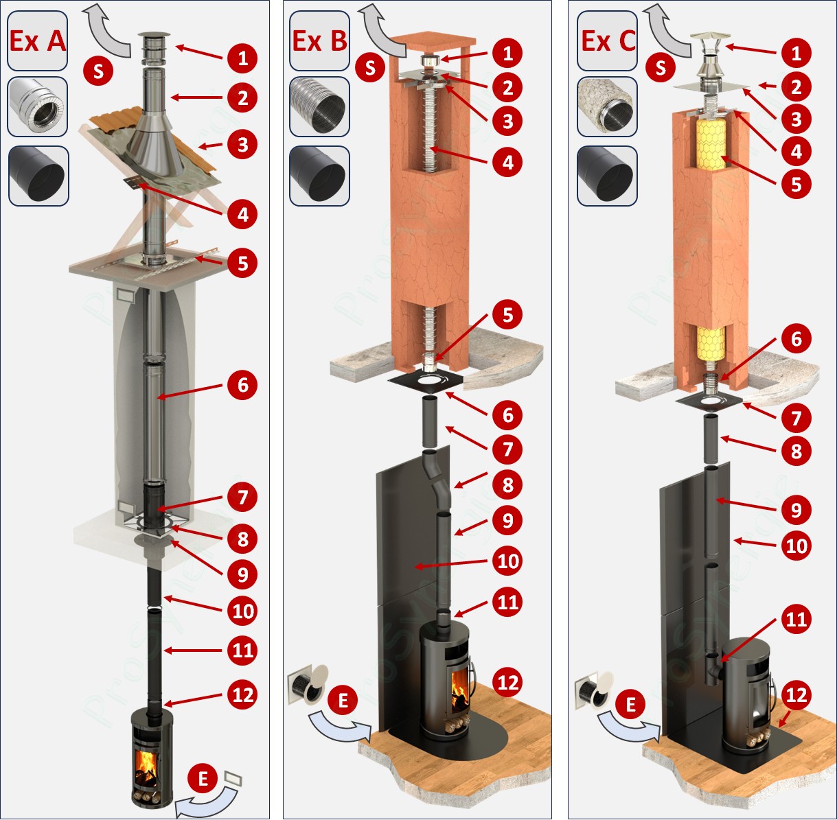 | 3 | Colier de tubage | Fixation haute du flexible de conduit de fumée |
